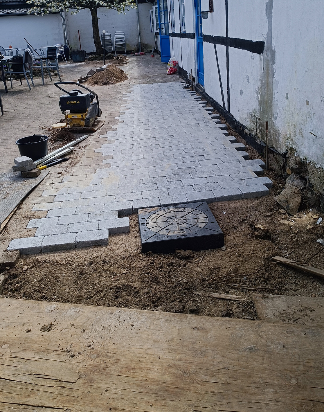 Hos Nyhaven handler belægning ikke kun om at lægge sten i jorden. Det handler om at skabe et harmonisk og gennemtænkt uderum. Vi afslutter altid med præcise fuger, skarpe kanter og en grundig finish, så helheden fremstår ordentlig og elegant. Det gælder både i private haver og på større arealer som fællesområder eller virksomhedsgrunde.